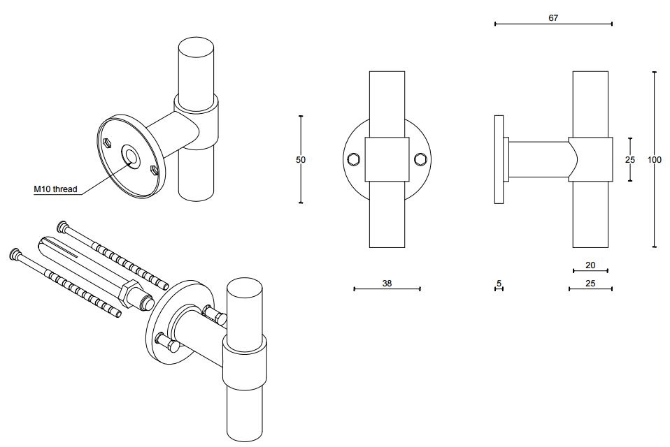 Bij deze vaste voordeurknop wordt een wisselstift geleverd waarmee u aan de binnenzijde van de deur een deurkruk kunt monteren op dezelfde hoogte.