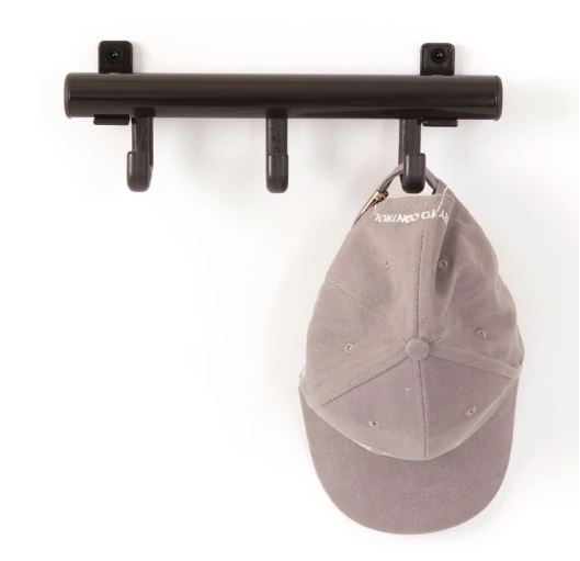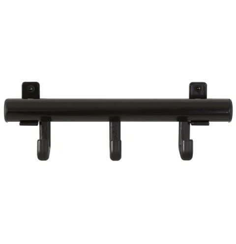 Compacte aluminium wandkapstok met drie kunststof haken. De kapstok is eenvoudig in elkaar te zetten en aan de wand te bevestigen.