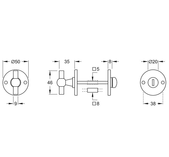 Stift maat van de wc-sluiting is zowel vierkant 5 als 8 mm!