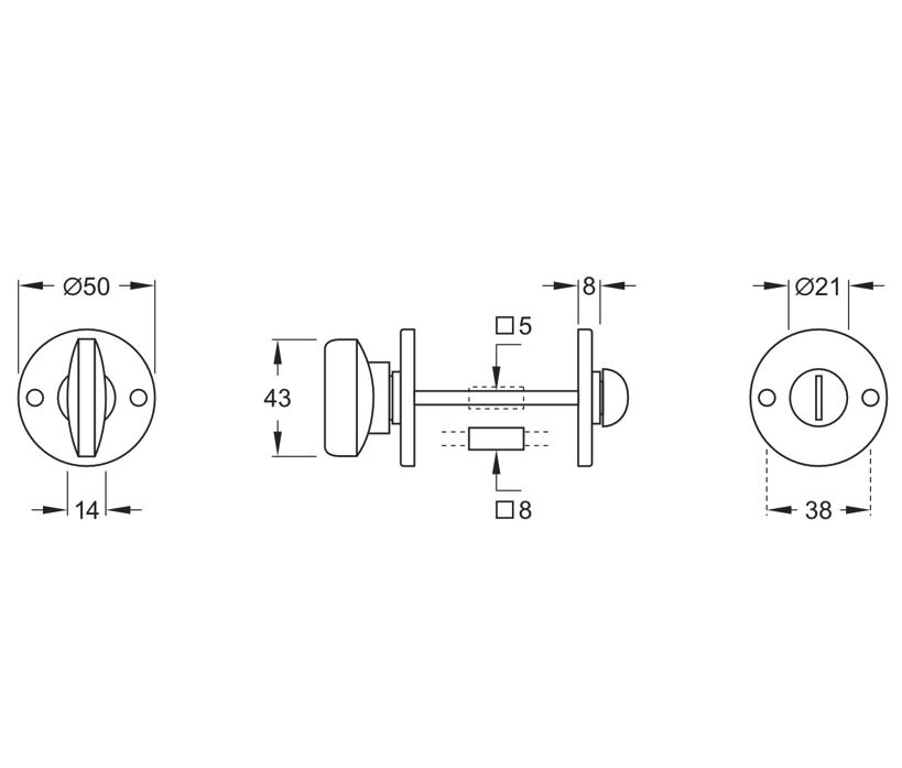 Stift maat van de wc-sluiting is zowel vierkant 5 als 8 mm!