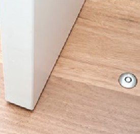 Deze deurstop is een innovatieve deurstop-oplossing voor draaideuren en schuifdeuren. De deurstop ligt vlak op de vloer en wordt alleen geactiveerd wanneer de deur over de aanslag opent. De magneet van de deur trekt de vloerpin omhoog en stopt de deur. Minimale deurdikte is 35 mm.