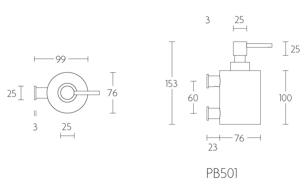 Dit is een zeepdispenser met muurbevestiging. De ontwerper is Piet Boon uit de serie ONE BATHWARE by PIET BOON.